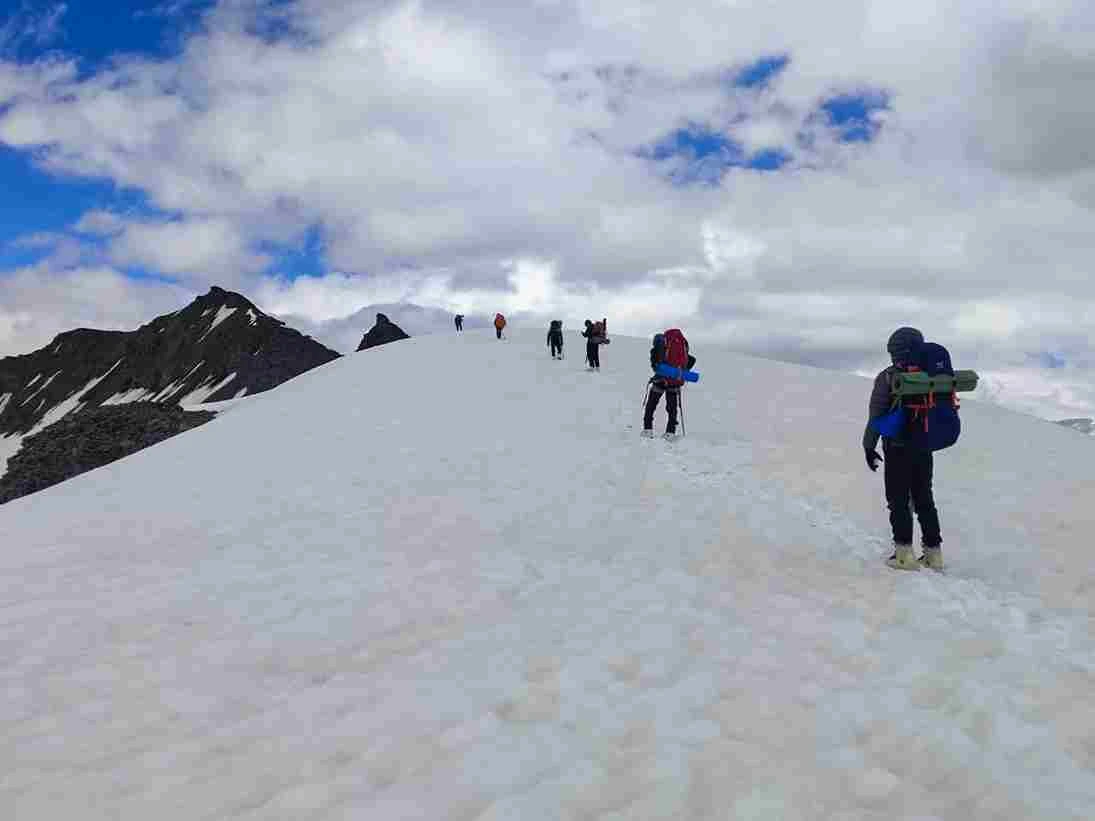 - Semi-technical summit requiring rope, crampons & ice-axe
