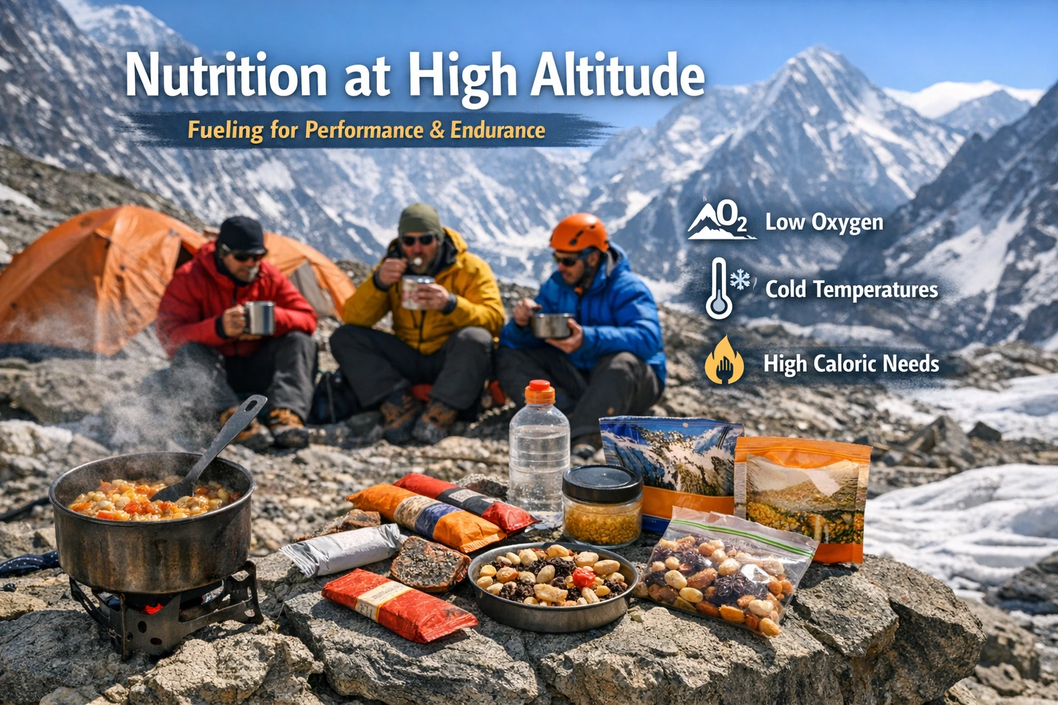 Nutrition at altitude is not just about eating more food. It is about eating the right combination of calories, macronutrients, and micronutrients in forms the body can digest efficiently in low-oxygen conditions. The goal is sustained energy, improved acclimatization, muscle preservation, and stable mental function over multi-day efforts in harsh terrain.